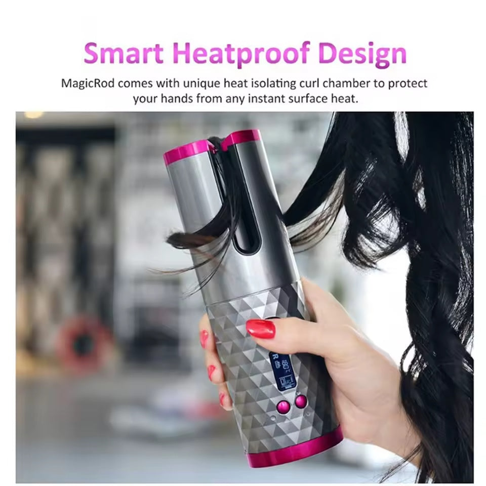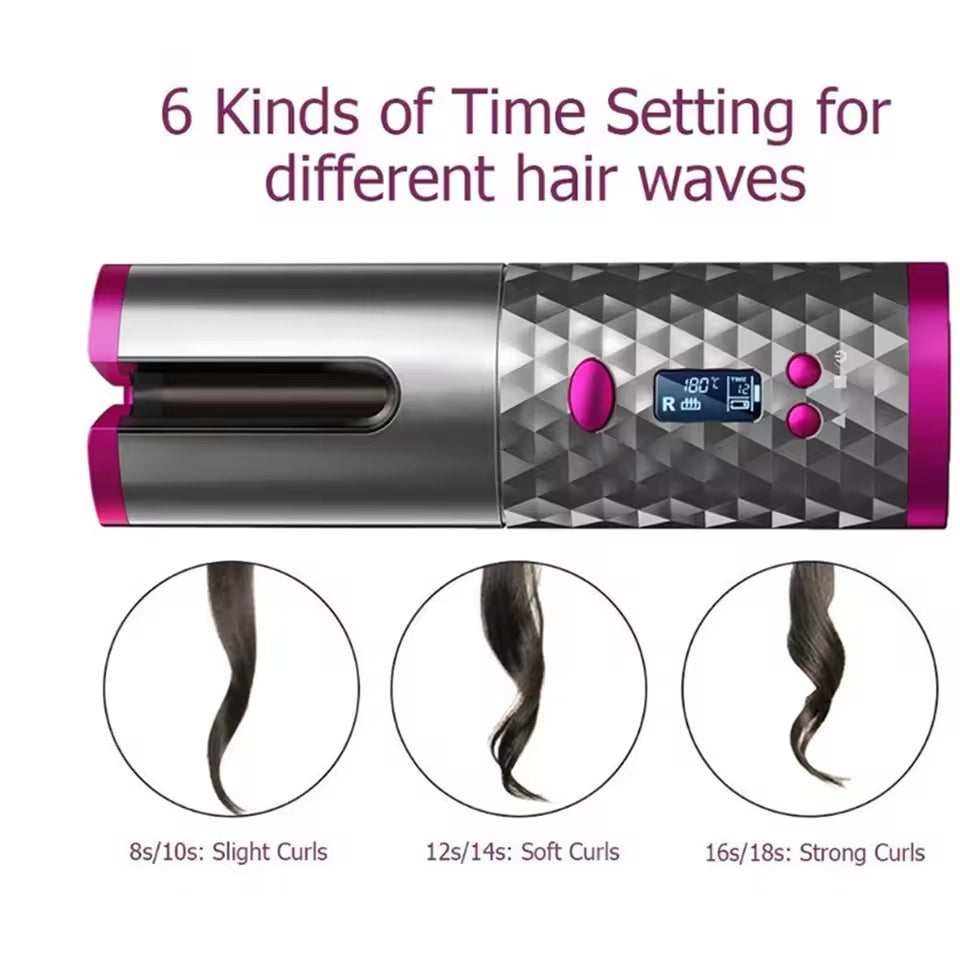 【Easy Use & Portable】The barrel will auto spin around and wrap section of hair into curling chamber. Easy to carry when traveling, can curl your hair anytime and anywhere, far away from the trouble with the line.