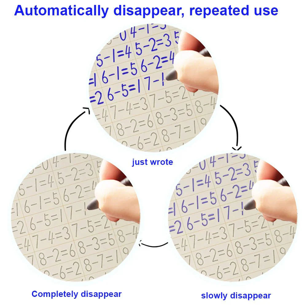 Special magic ink fades after drying, allowing endless practice without wasting paper