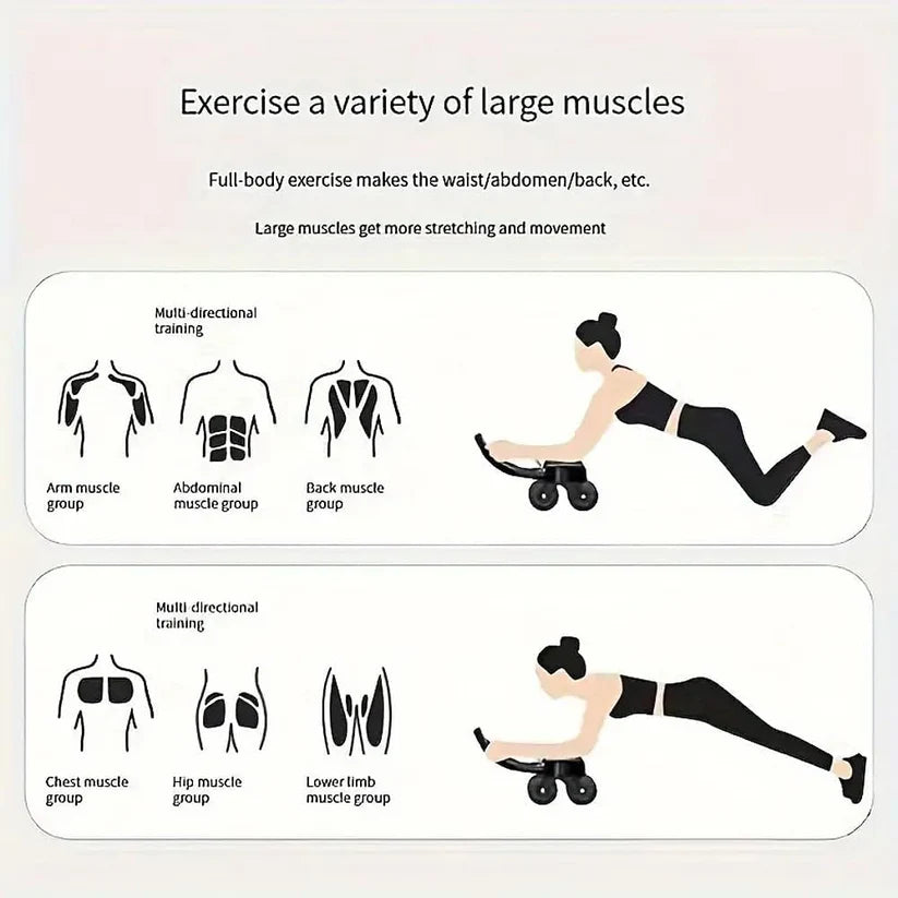 The wider front and back two wheels for smooth rolling and better control helping you work out every muscle and in your core and at the same time providing safer control of your body to achieve maximum results
