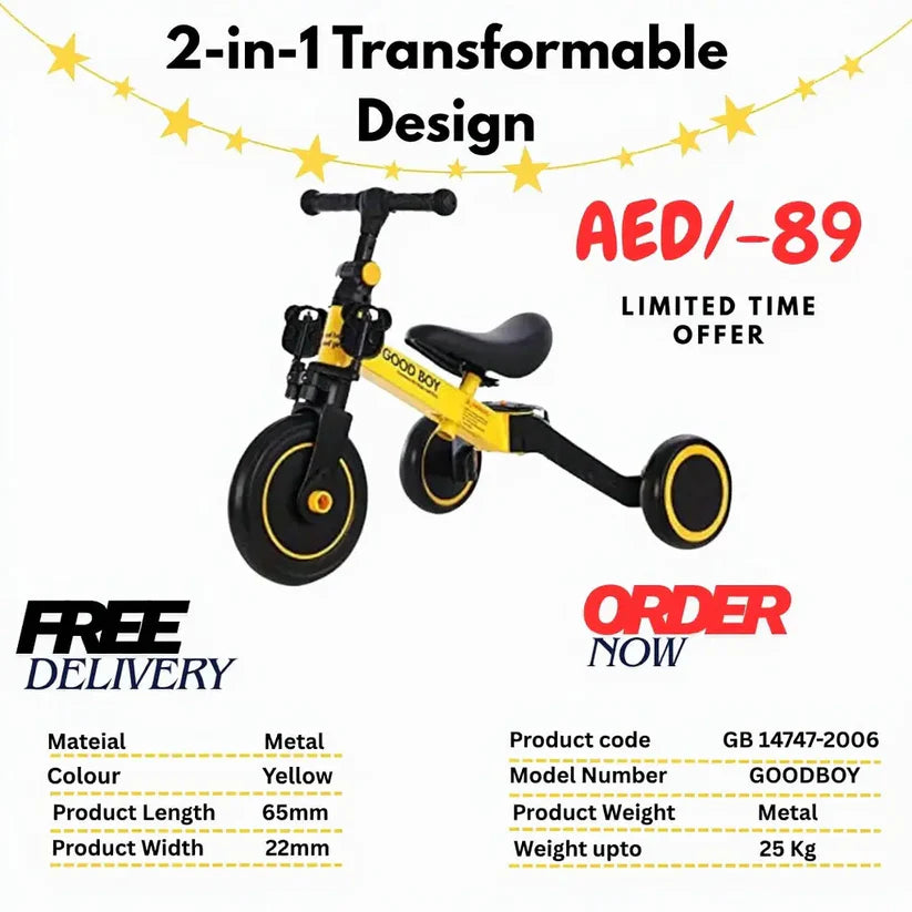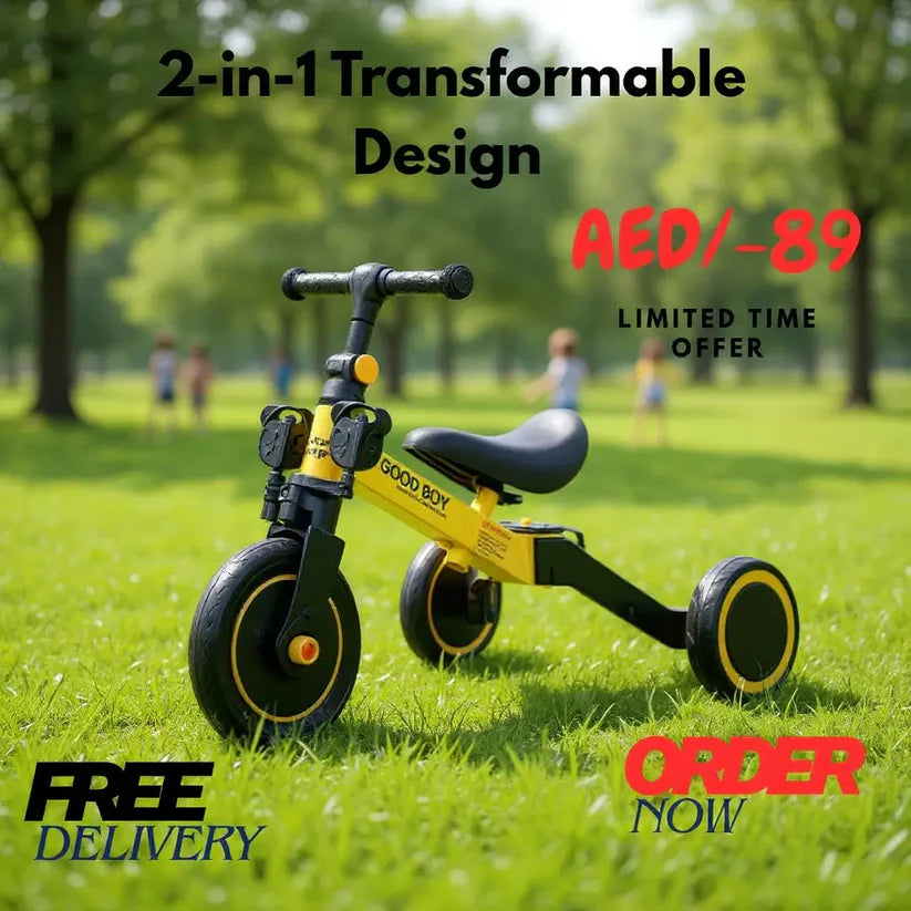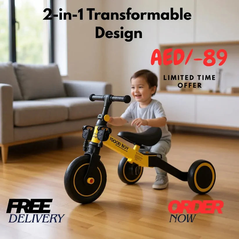 Give your child the joy of riding with this Kids Transformable Bicycle, designed to easily convert from a stable tricycle to a smooth two-wheel bicycle. Perfect for toddlers and young kids, this 2-mode kids bike helps build balance, confidence, and motor skills at every stage of growth.