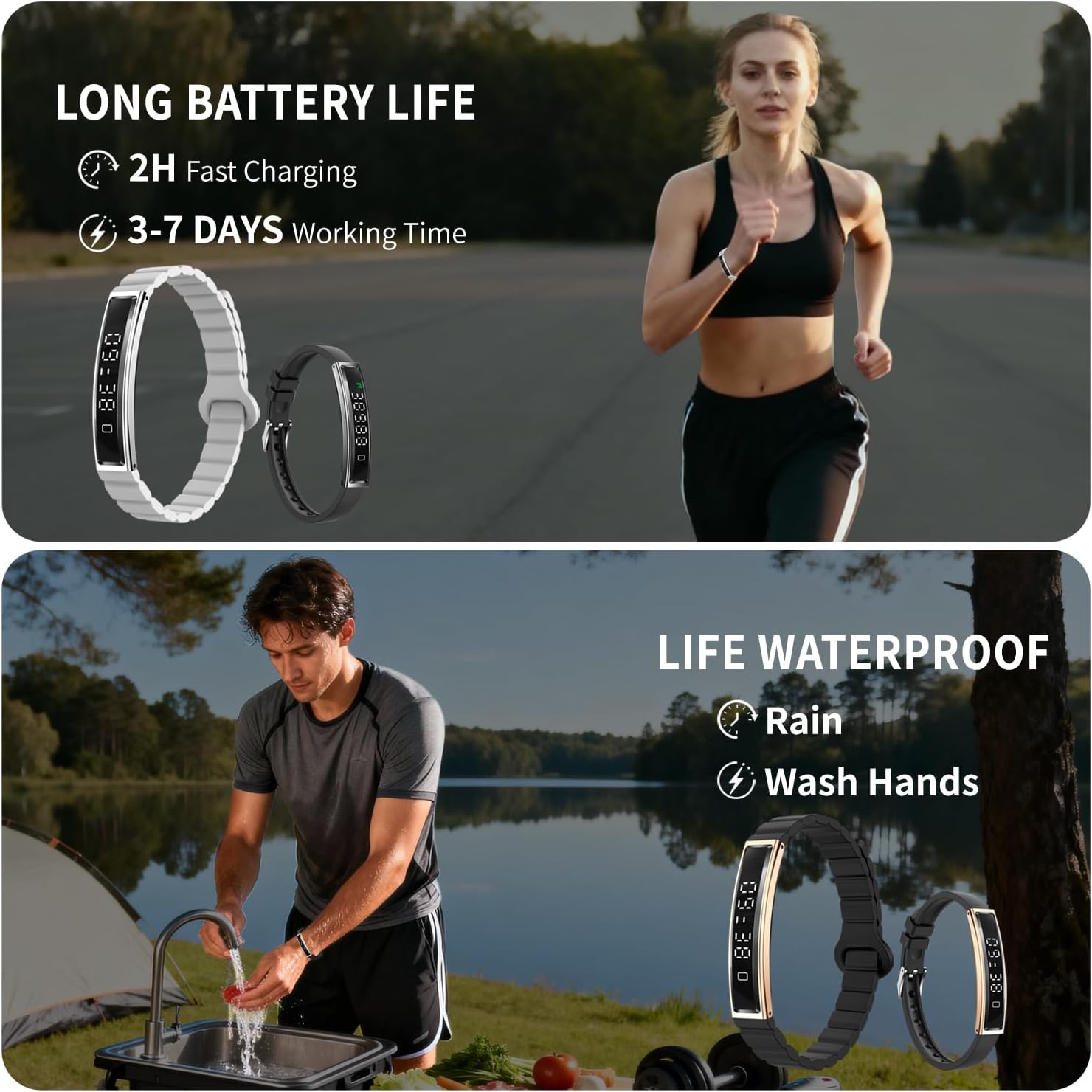 Smart Bracelet Fitness Tracker with Step Counter, Heart Rate Monitor, Sleep Monitor, Waterproof Smart Band for Men & Women, Android iOS Compatible, Gray/Black