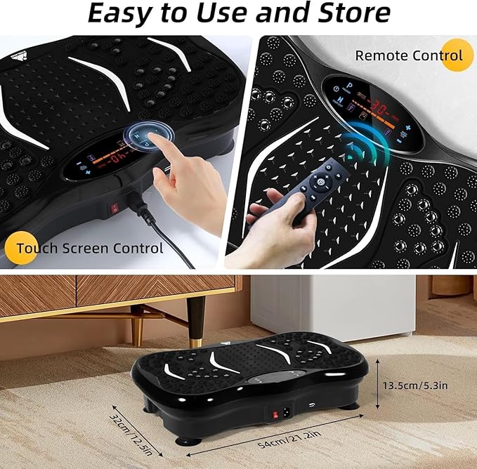 This vibration plate exercise machine transforms your home into a personal fitness studio, delivering efficient full-body workouts in just minutes a day. With 99 adjustable speed levels and 5 automatic programme modes, this versatile fitness trainer adapts to your needs—from gentle muscle relaxation to intense strength training. The intelligent vibration technology engages multiple muscle groups simultaneously, helping you build strength, enhance flexibility, and ease joint discomfort with low-impact, high-efficiency movements. The built-in Bluetooth speaker and LED display let you enjoy your favourite music whilst exercising, connecting seamlessly to your phone, tablet, or laptop. Two included resistance bands expand your workout possibilities, allowing you to target specific areas and add variety to your routine. The textured platform features over 1,000 massage dots and 22 magnetic stones that provide soothing foot massage whilst you exercise, offering relief from heel pain, walking fatigue, and cold feet. With a maximum load capacity of 150 kg and a compact design, this vibration fitness machine fits comfortably in any home space. Whether you're looking to improve circulation, tone muscles, or simply maintain an active lifestyle, this equipment makes achieving your fitness goals convenient and enjoyable.